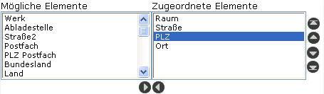 Im folgenden Beispiel können Sie die Adressinformationen auswählen, die Sie im System anzeigen möchten. Die Liste Mögliche Elemente zeigt alle im System verfügbaren Adressdaten. Die Liste Zugeordnete Elemente zeigt die Adressdaten, die Sie schon zur Anzeige im System zugeordnet haben.
